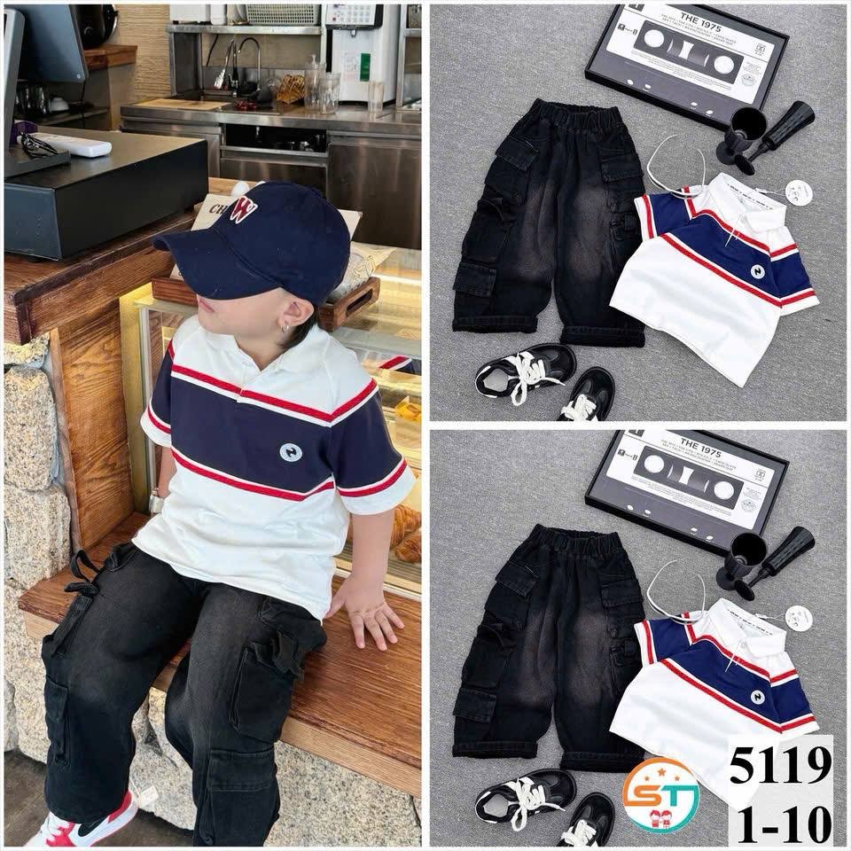 Boys’ Black Cargo Pants & Polo Shirt Set