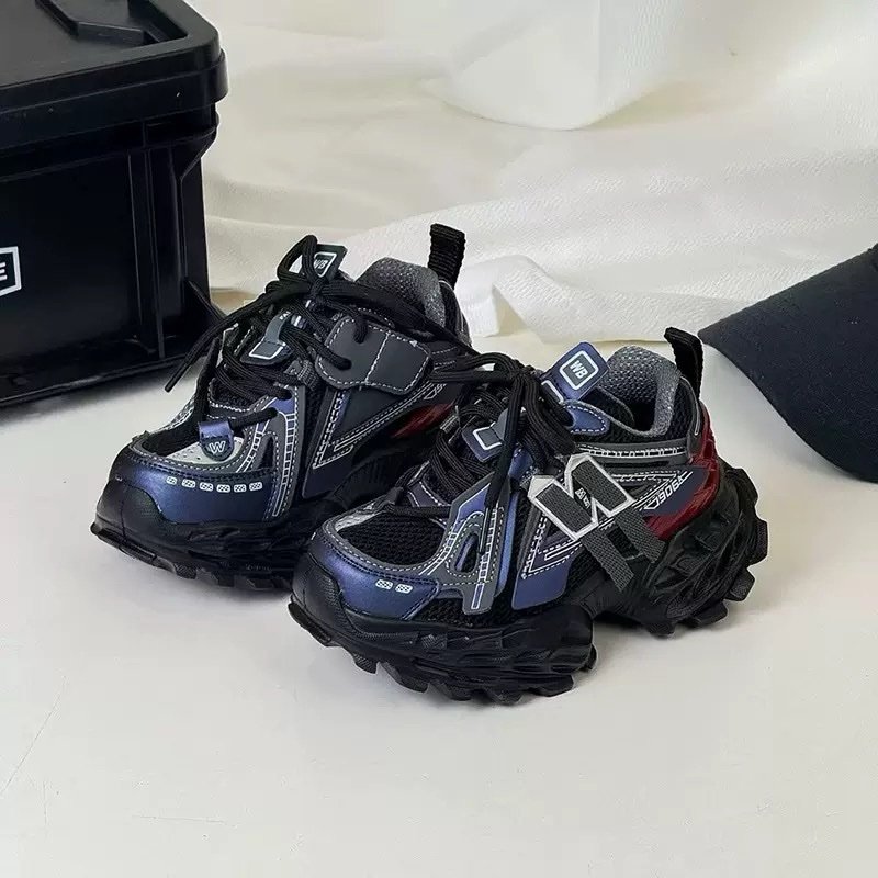 Boys Dark, chunky sneakers with blue