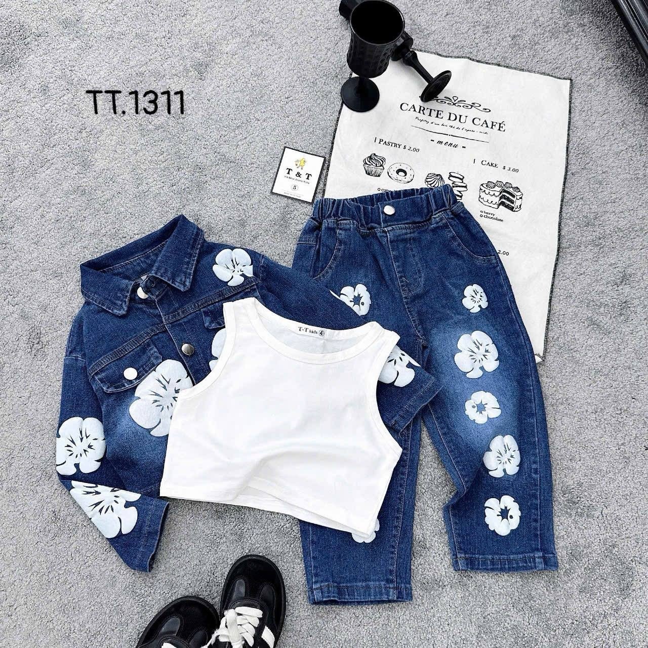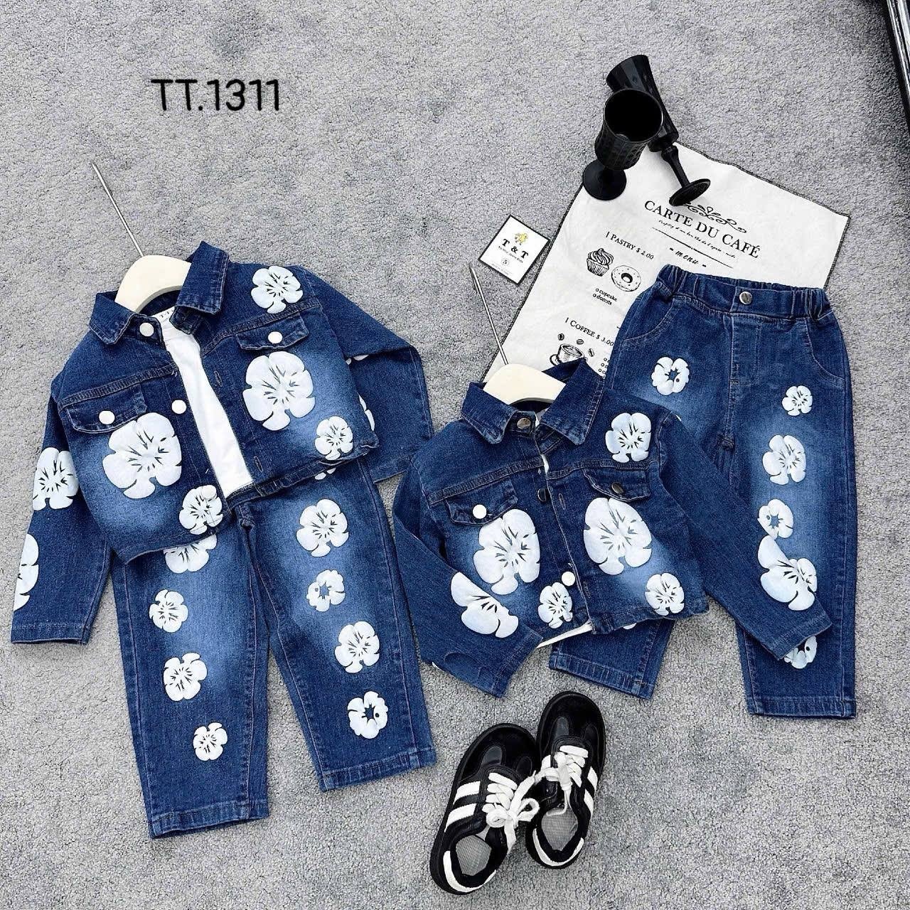 Girl’s Denim Jacket & Pants Set with Floral