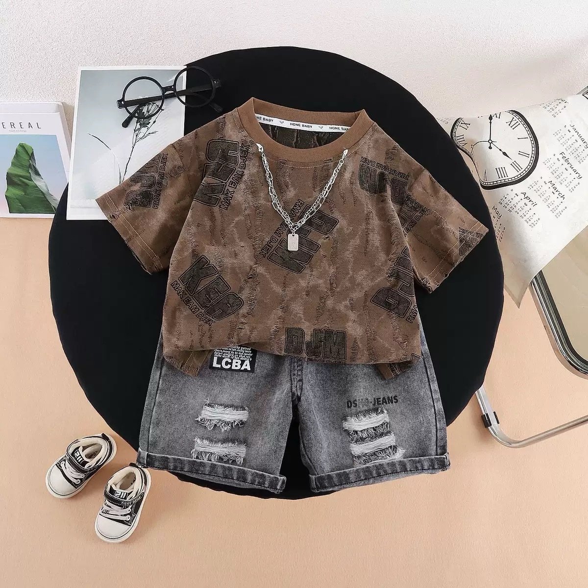 Trendy T-Shirt and Denim Shorts Set for Boys