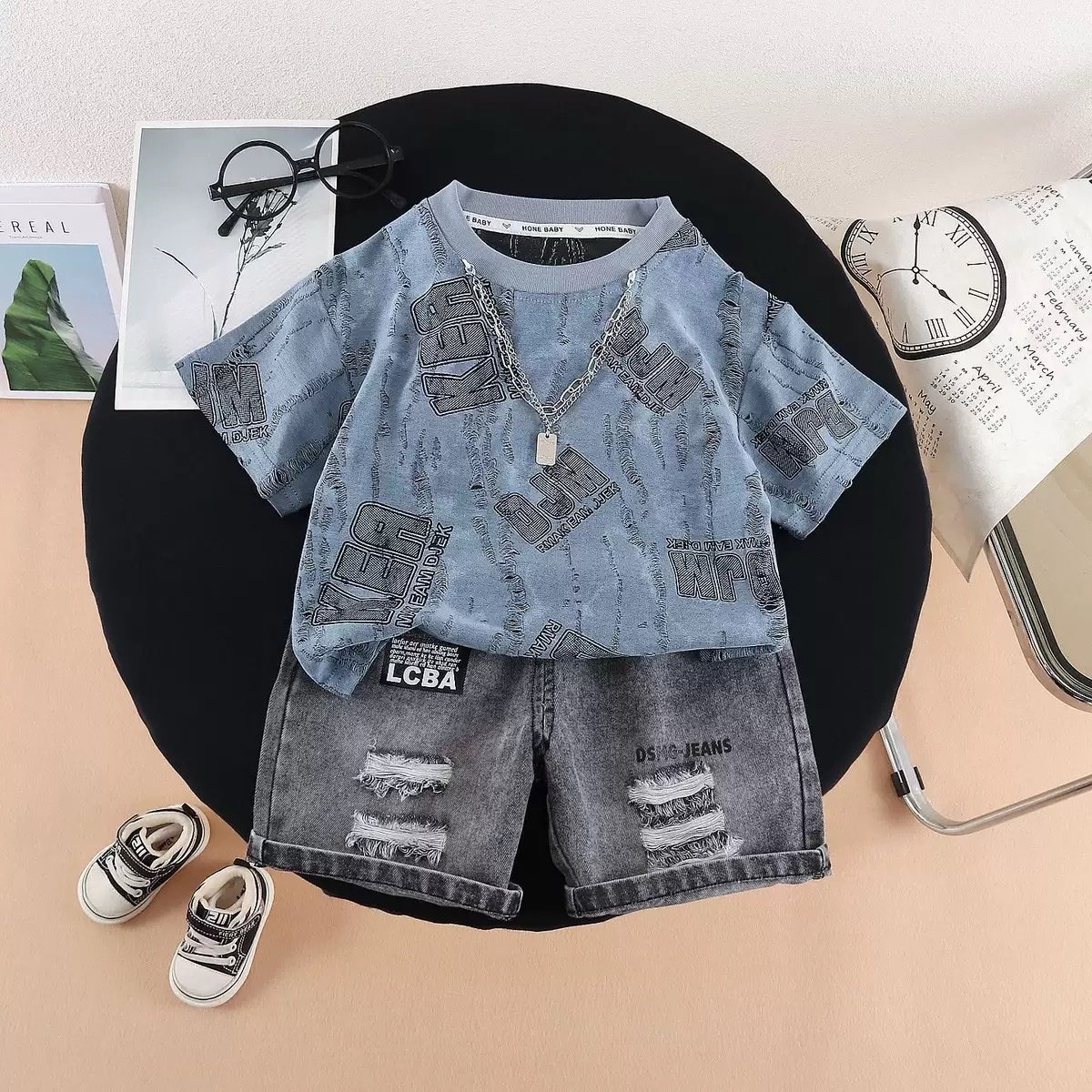 Trendy T-Shirt and Denim Shorts Set for Boys